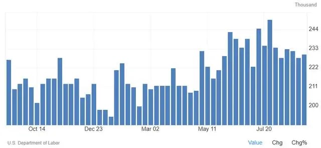 与PPI同时发布的另一组数据显示,截至9月7日的一周,美国季调后首次申请失业救济金的人数为23万人,与市场预期一致,前一周的数字从22.7万人上调至22.8万人。