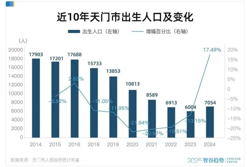 当地主管部门还是太保守了。年底一看,2024年天门市出生人口增幅高达17%!