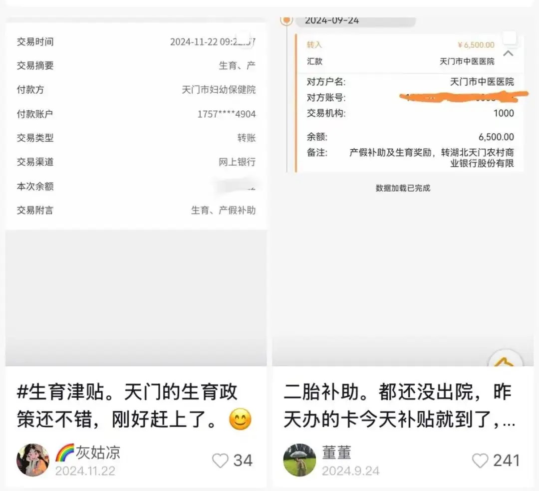 天门的生育补贴不是空头支票,不少天门宝妈在社交媒体晒出了自己领到的补贴。其中一宝妈晒出的视频画面里,晒出了天门市政府总计10100元生育奖励补助。据悉,她还拿到了18万的购房补贴。