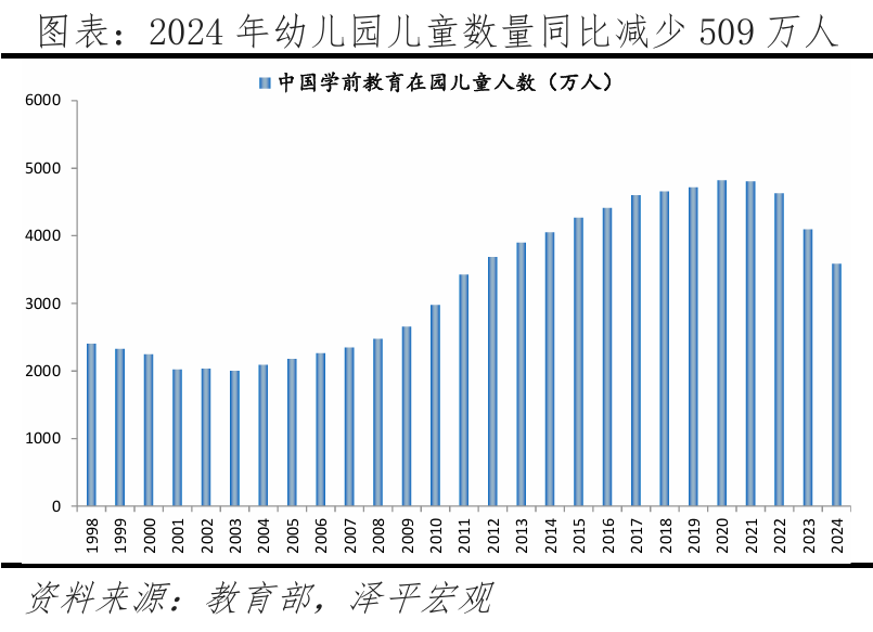 6月,教育部发布《2024年全国教育事业发展统计公报》显示,2024年全国幼儿园25.33万所,同比减少2.1所,学前教育在园儿童数量同比减少509万人。