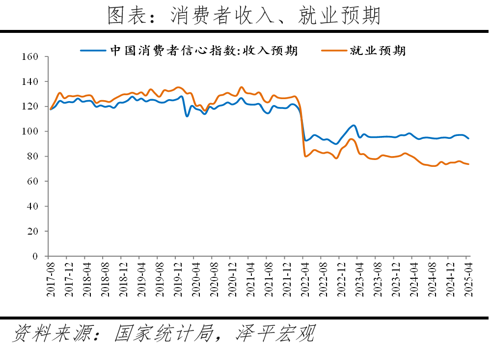 后房地产时代,简单取消限制性措施已不能实现楼市企稳,目前核心制约因素是居民支付能力和预期,2025年4月,居民消费信心指数对未来的收入、就业预期环比分别-2.6%、-1.1%,同比分别为-1.7%、-6.7%。所以,需要新一轮大规模经济刺激和住房保障银行收储之类的措施。