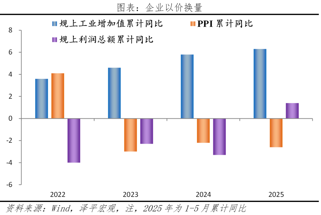 去年924以来,国家拉开了大规模经济刺激计划的序幕,增量政策力度为过去五年之最,带动国内经济出现筑底企稳迹象。1-4月,随着企业主和消费者预期边际修复,叠加抢出口驱动出口改善并带动工业生产和投资提速,以旧换新政策提振消费,大规模设备更新政策刺激制造业投资,1-5月规模以上工业增加值6.3%,高于2024年同期0.1个百分点、高于2023年同期2.7个百分点;出口增速较去年大幅增加3.3个百分点,社零增速较去年小幅增加0.9个百分点。