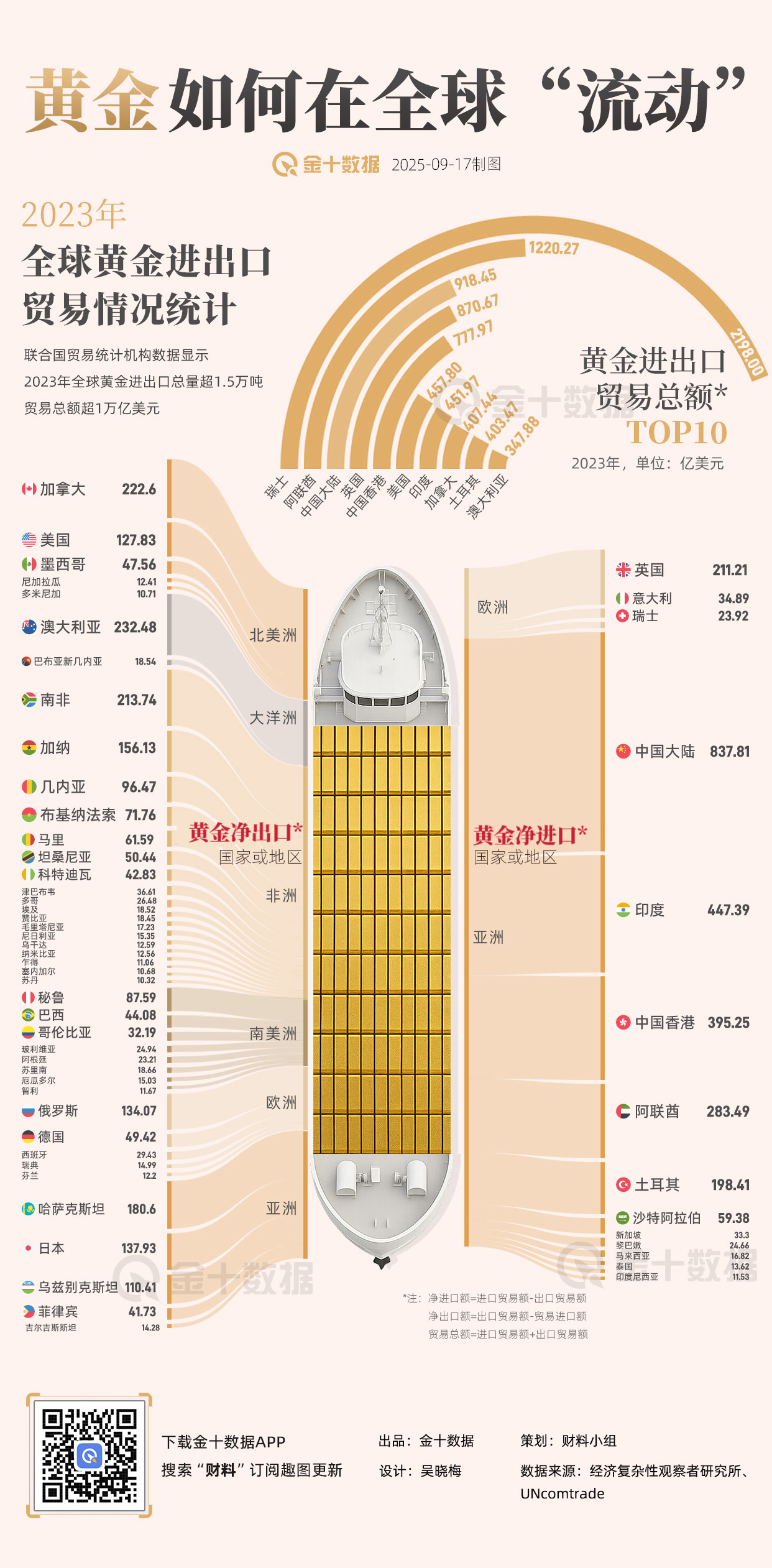 联合国贸易统计机构数据显示,2023年全球黄金进出口总量超1.5万吨,贸易总额超1万亿美元……