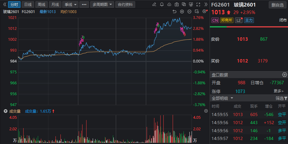 2025 年 11 月 24 日,玻璃期货盘面在持续弱势的基本面背景下出现减仓上涨,行业情绪边际改善,玻璃2601合约大幅减仓近8万手,日内上涨2.95%,报1013元/吨。综合市场机构观点来看,尽管当前供需格局偏弱、库存高位以及终端需求改善有限,但随着产线冷修消息增多、供给端收缩预期增强,以及盘面处于年内低位区间,一定程度上促使资金在超跌位置产生修复情绪。同时部分区域的阶段性产销改善亦对价格形成支撑。
