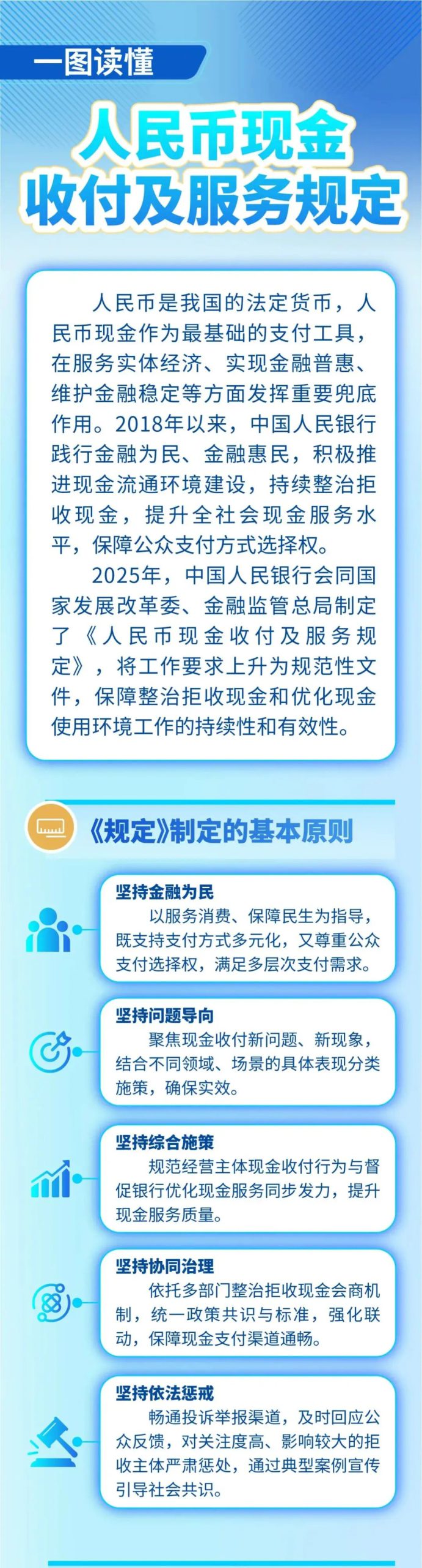 为切实维护人民币法定货币地位,防范和整治拒收人民币现金行为,满足社会公众多样化支付服务需求,构建多元支付方式共同发展下的现金便利流通环境,中国人民银行会同国家发展改革委、金融监管总局制定了《人民币现金收付及服务规定》,自2026年2月1日起施行。