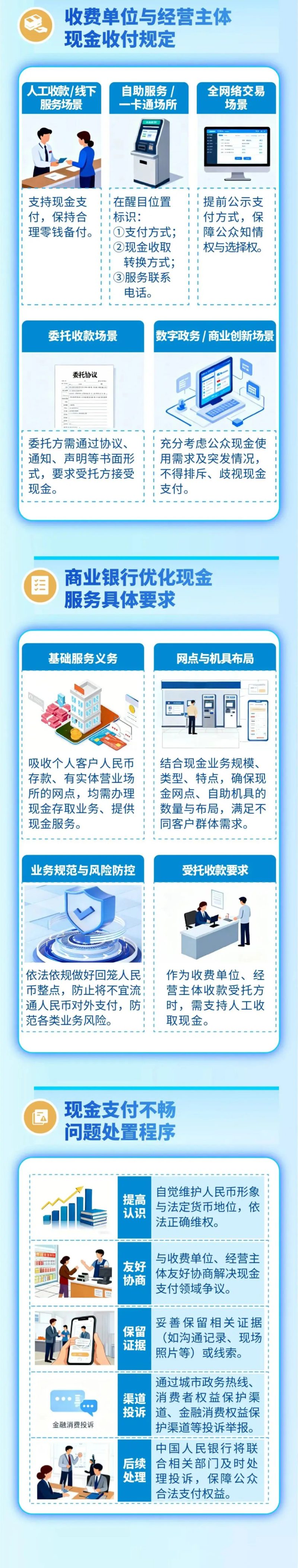 采取人工方式收款、提供面对面服务以及线上预约、交易,线下完成服务或货物交付,具备当面收款条件的,收费单位、经营主体应支持现金支付,保持合理的零钱备付。